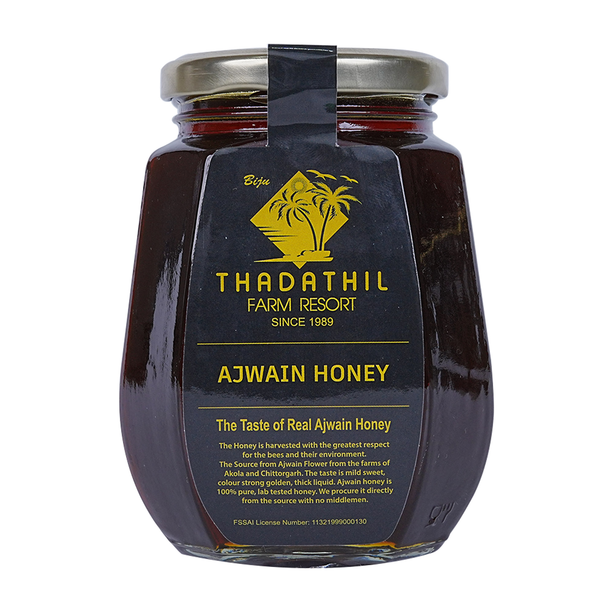 At Biju Thadathil Farm Honey, our Ajwain Honey is sourced from bees that forage exclusively on Ajwain flowers, which is a plant traditionally used in Ayurveda medicine for digestion, respiratory related issues, and immunity enhancer. Because of this the honey has a distinctive aroma, rich golden color, and therapeutic healing benefits not found in regular honey.