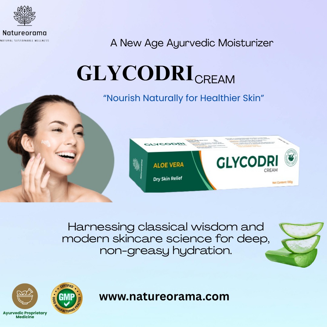 Glycodri cream is a unique Ayurvedic formulation designed to provide deep hydration and nourishment to dry and damaged skin. Enriched with the natural goodness of Aloe Vera, Glycerin, and Shea Butter, it moisturizes, softens, and protects the skin, making it ideal for dry, rough, and chapped skin.
