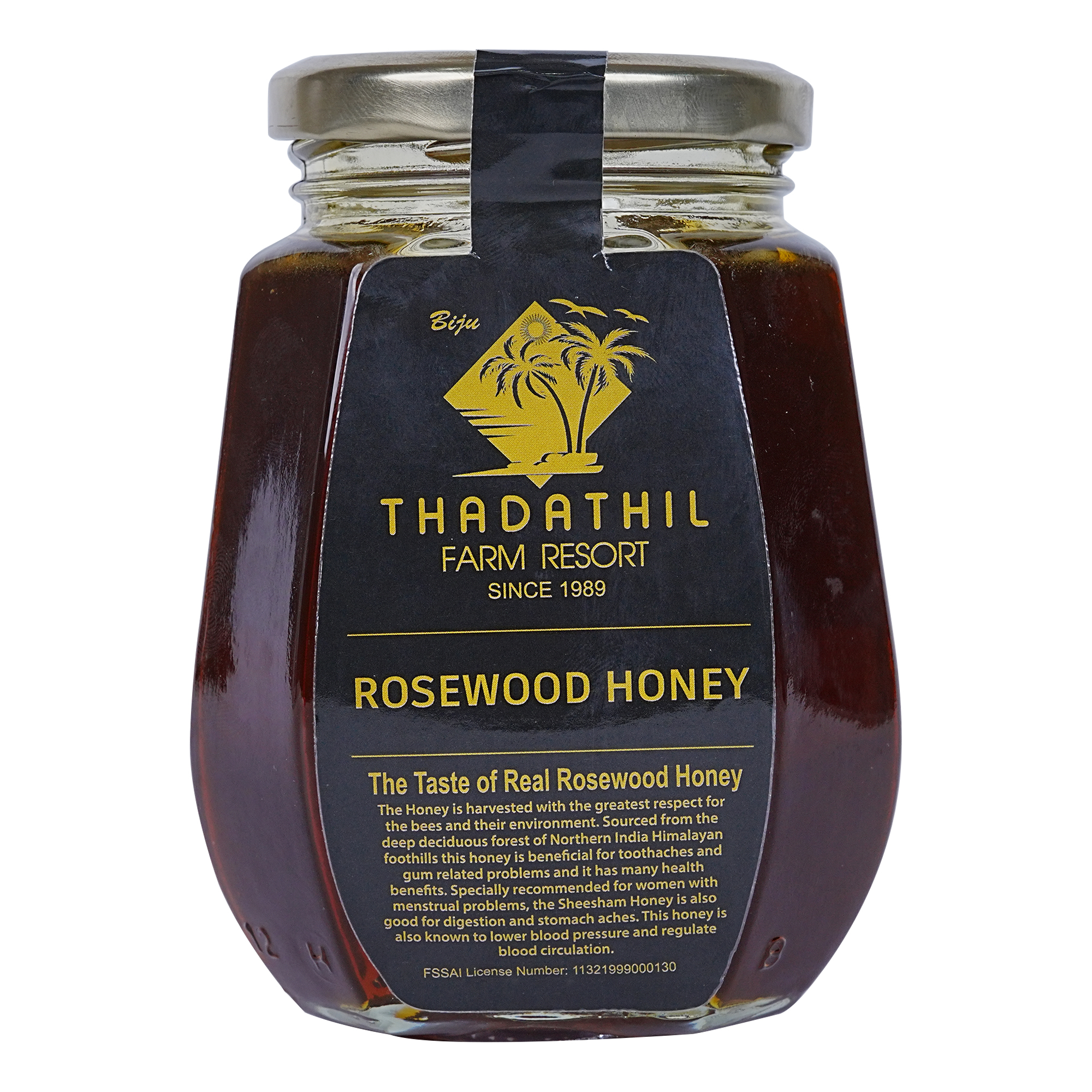 Rosewood Honey, also known as Sheesham Honey, is a special and nutrient-rich honey variety stored from bees that forage on sheesham tree blossoms. At Biju Thadathil Farm Honey, our Rosewood Honey is sourced during the short flowering season of Sheesham trees, resulting in a rare honey infused with deep herbal notes, warm woody aroma, and exceptional therapeutic properties.